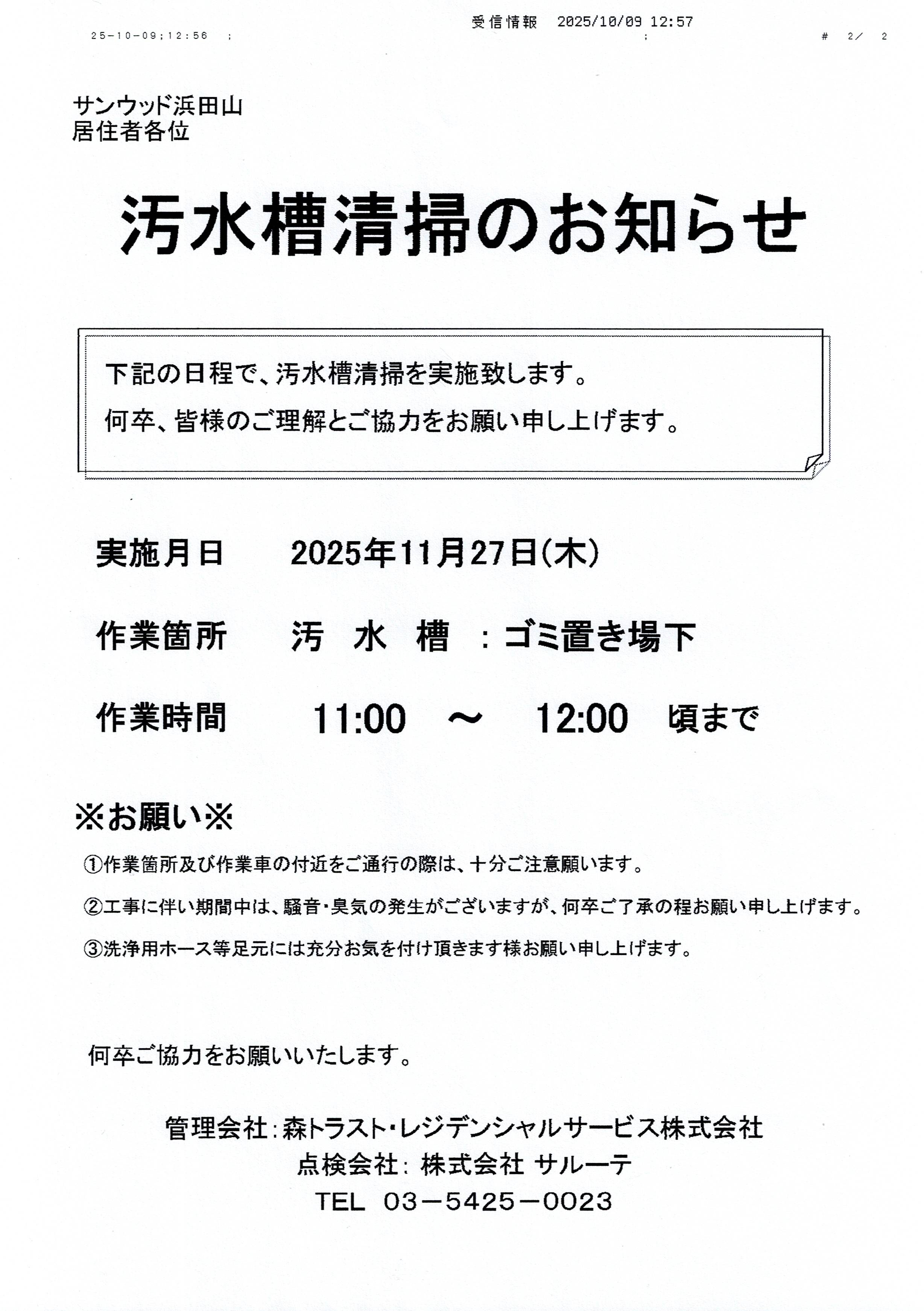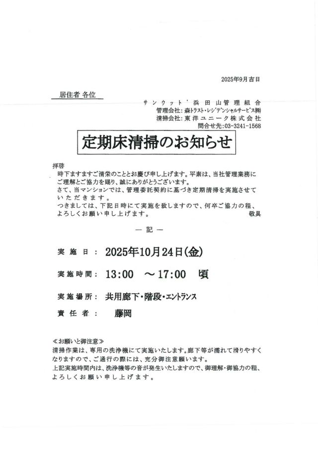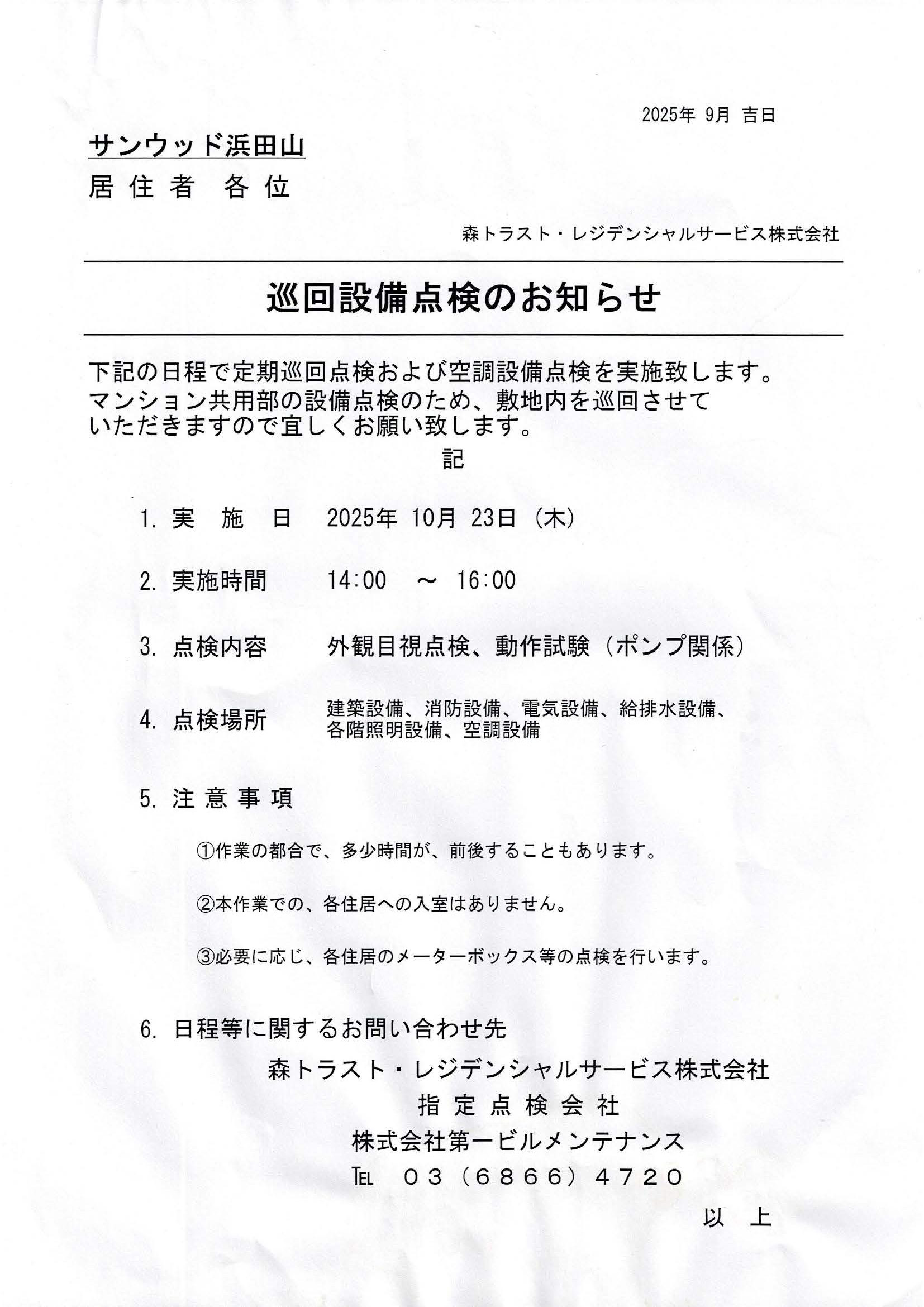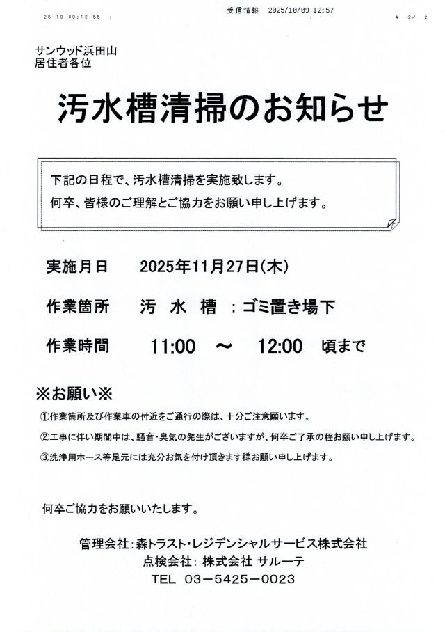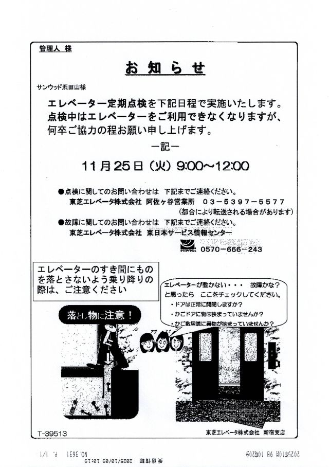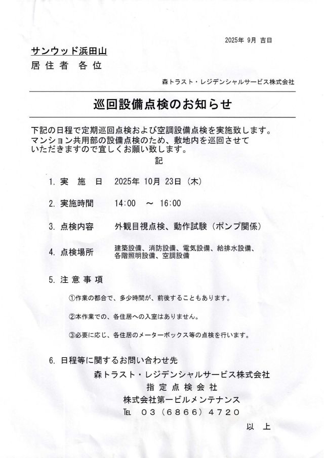 サンウッド浜田山 掲示板 現在、メールボックス室の背面に掲示中の内容です |