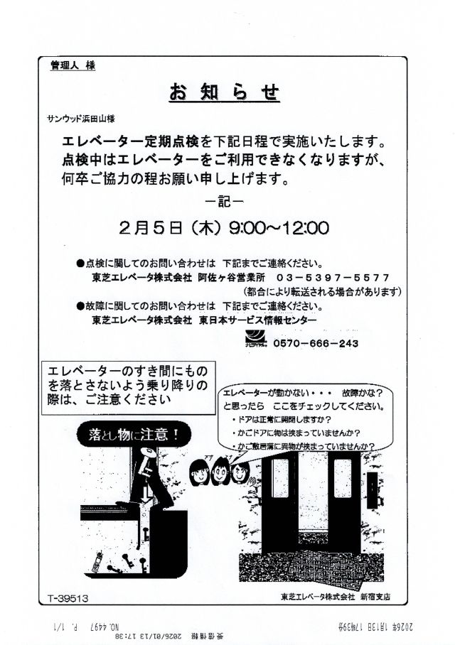 | サンウッド浜田山 掲示板 開設:2025.10.01 更新:2026.01.24 (各画像をクリックすると拡大表示) ![]() |